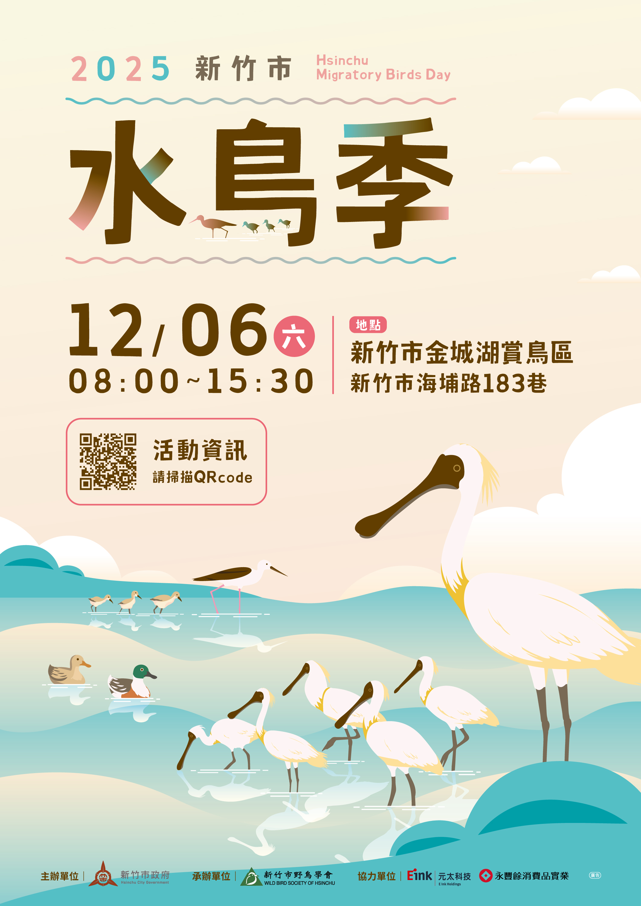 2025年元太科技社會共融小組連續第三年參與新竹水鳥季,不僅號召同仁擔任企業志工、親子同行,也持續以核心產品:電子紙技術打造的生態看板,推動環境教育,透過電子紙顯示技術,協助打造更直觀、環保且具互動性的生態學習環境,讓民眾更容易親近自然、認識鳥類。